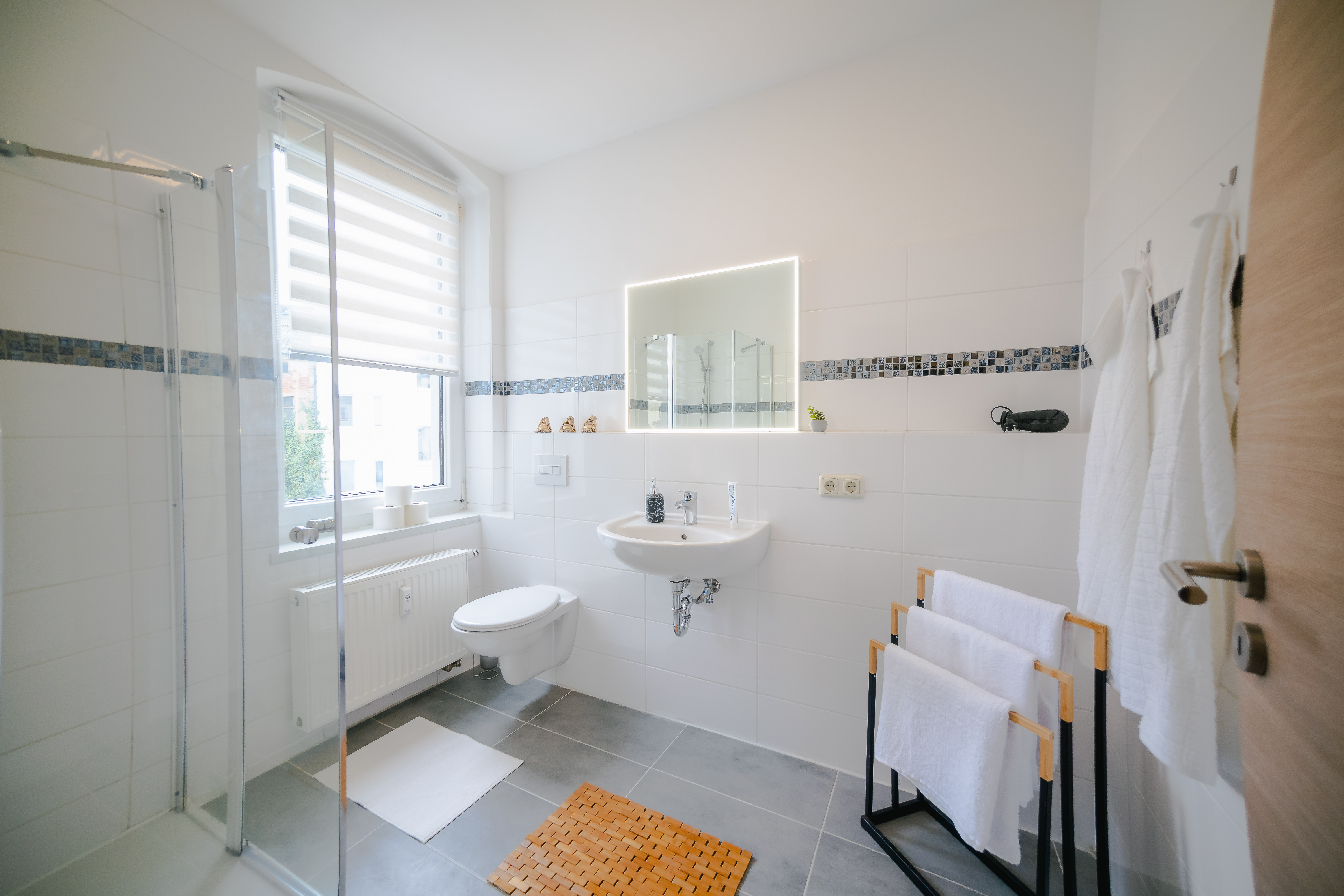 Willkommen im Apartment Laura – einer modernen 49 m² Ferienwohnung im Erdgeschoss der Schülerstraße 39 in 07545 Gera. Das stilvoll eingerichtete Apartment steht Ihnen als gesamte Unterkunft exklusiv zur Verfügung und eignet sich ideal für Familien, Paare oder kleine Gruppen mit bis zu 4 Personen. Die Wohnung verfügt über zwei Schlafzimmer mit insgesamt drei Einzelbetten, ein Badezimmer mit Dusche sowie eine gut ausgestattete Küche mit Kühlschrank und Mikrowelle. Ein Flachbild-TV mit Satellitenempfang sorgt für Unterhaltung, Handtücher und Bettwäsche sind selbstverständlich inklusive. Kostenloses WLAN und ein kostenloser Parkplatz direkt an der Unterkunft runden das Angebot ab. Haustiere sind nach Absprache willkommen. Die zentrale Lage bietet eine hervorragende Anbindung: Die Bahnstation Gera Süd erreichen Sie in nur 400 Metern, der Hauptbahnhof Gera ist 1,4 km entfernt. Restaurants und Cafés befinden sich direkt vor der Tür. Das Kultur- und Kongresszentrum Gera liegt nur 800 Meter entfernt, und Sehenswürdigkeiten wie das Otto-Dix-Haus (1,8 km), der Tierpark Gera (1,9 km) und der Volksgarten (3,2 km) sind bequem erreichbar. Der nächstgelegene Flughafen ist Leipzig/Halle in 73 km Entfernung. Nichtraucherunterkunft. Familienzimmer verfügbar.